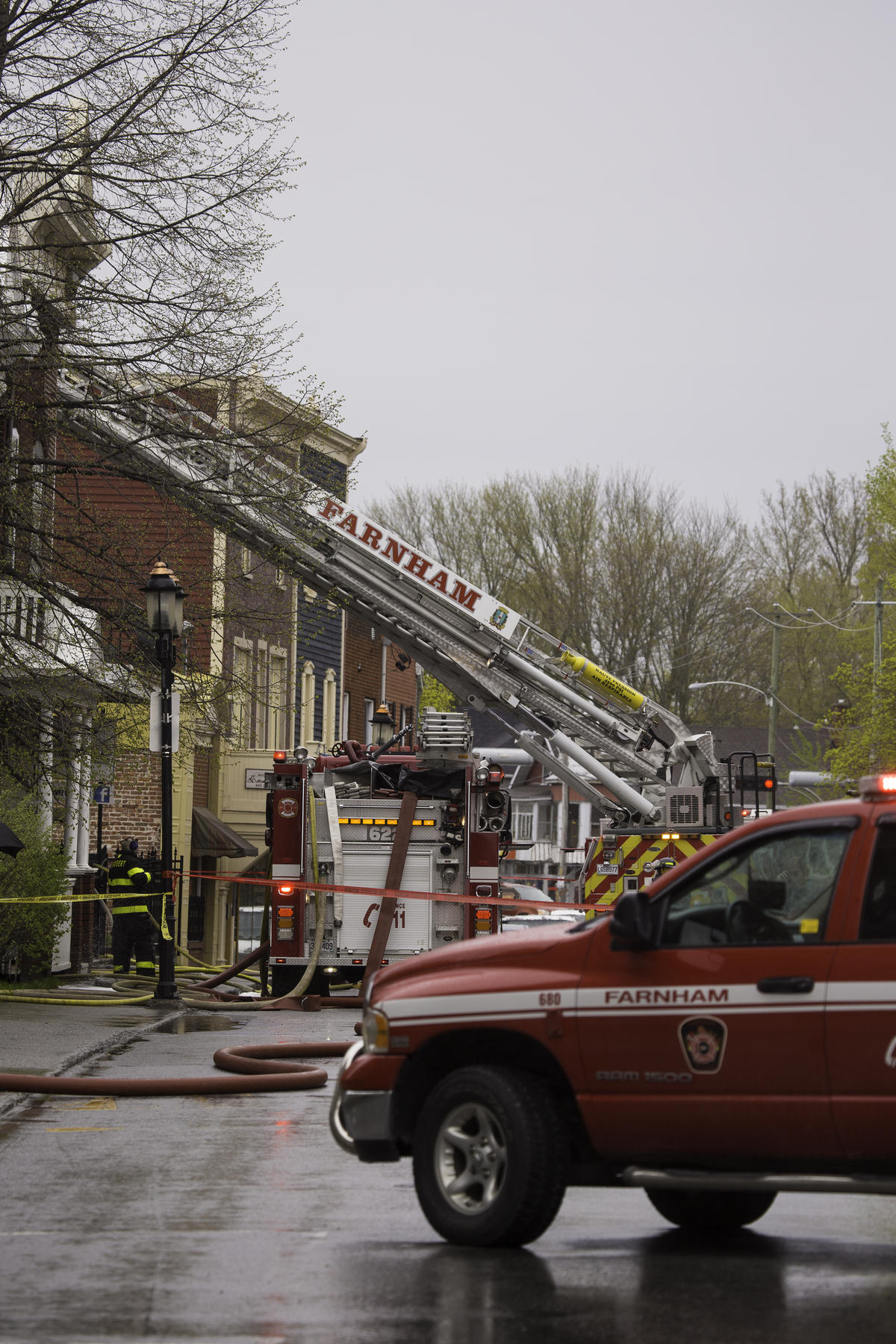 FAITS DIVERS. Un incendie s’est déclaré cet après-midi dans un commerce de type bistro-terrasse, situé au 341, rue Principale est, à Farnham.